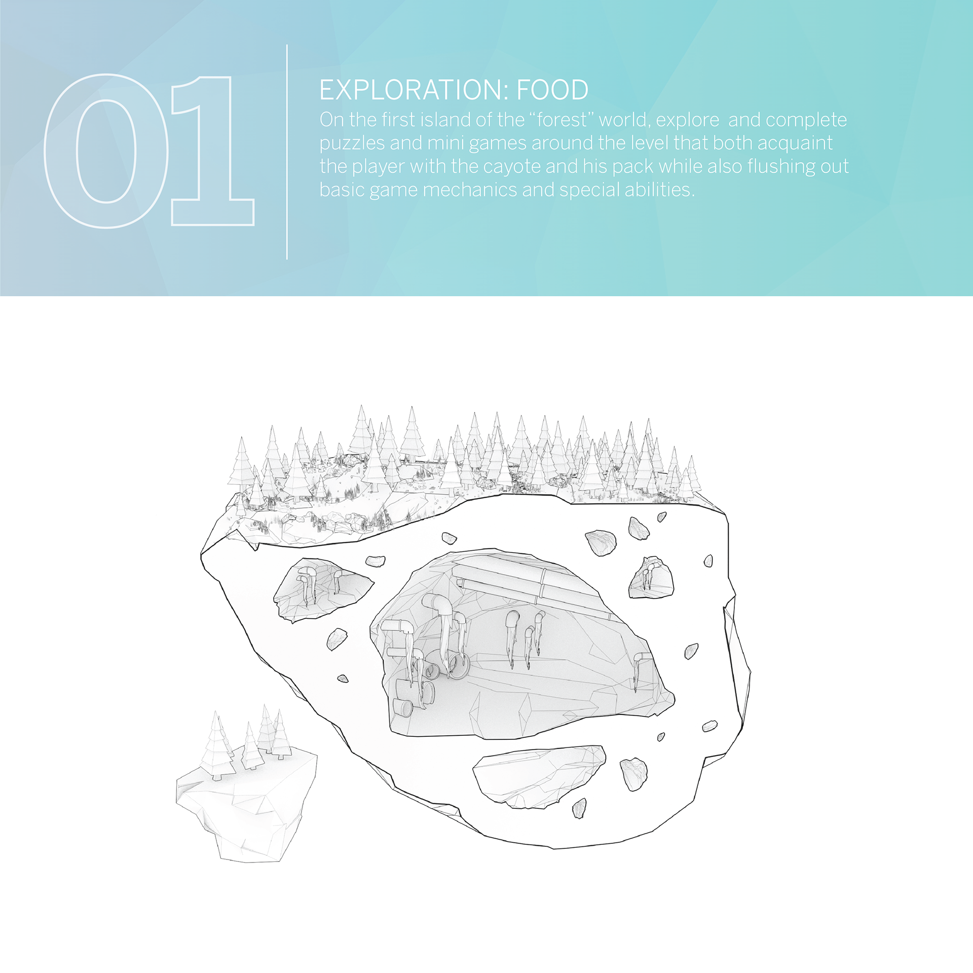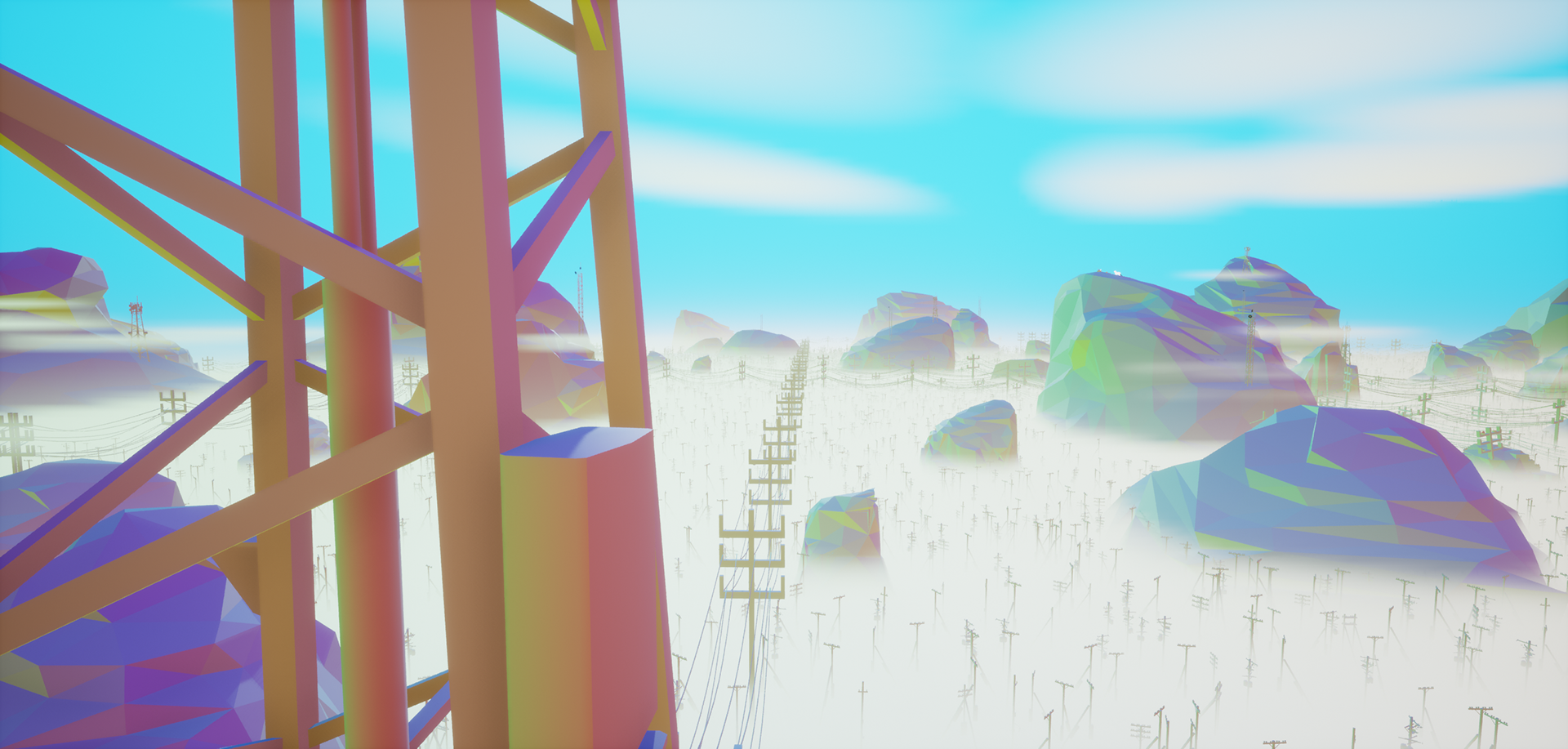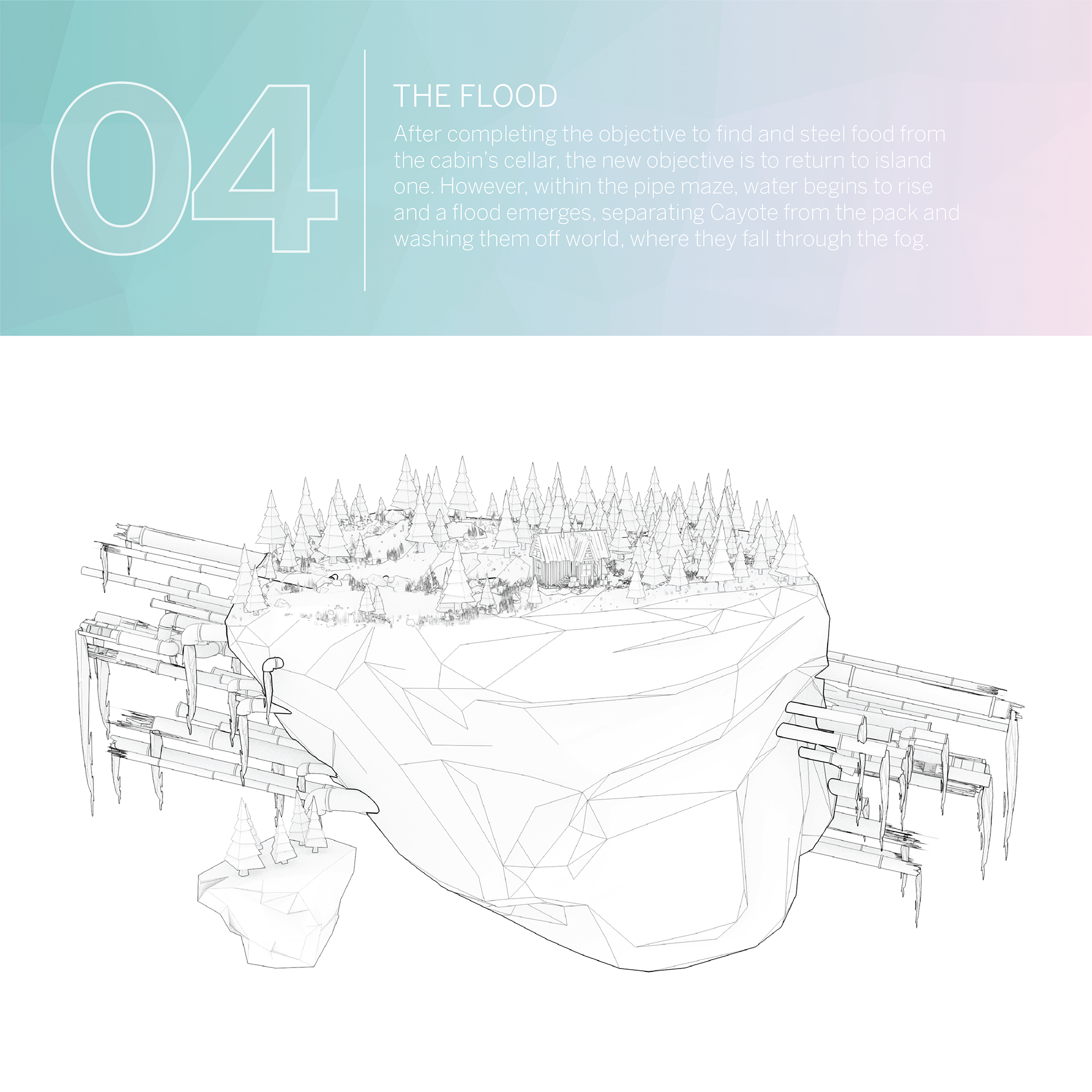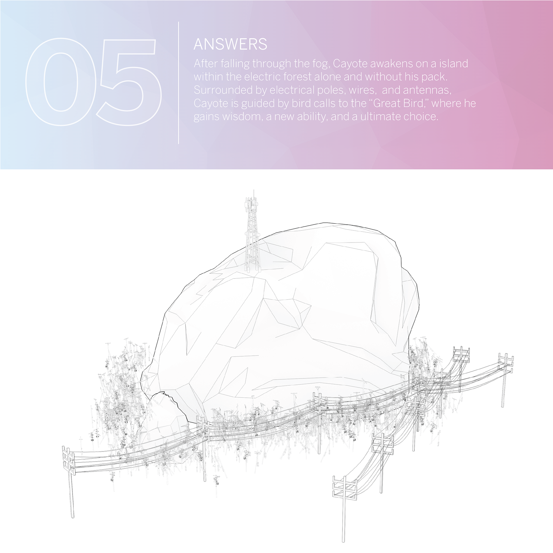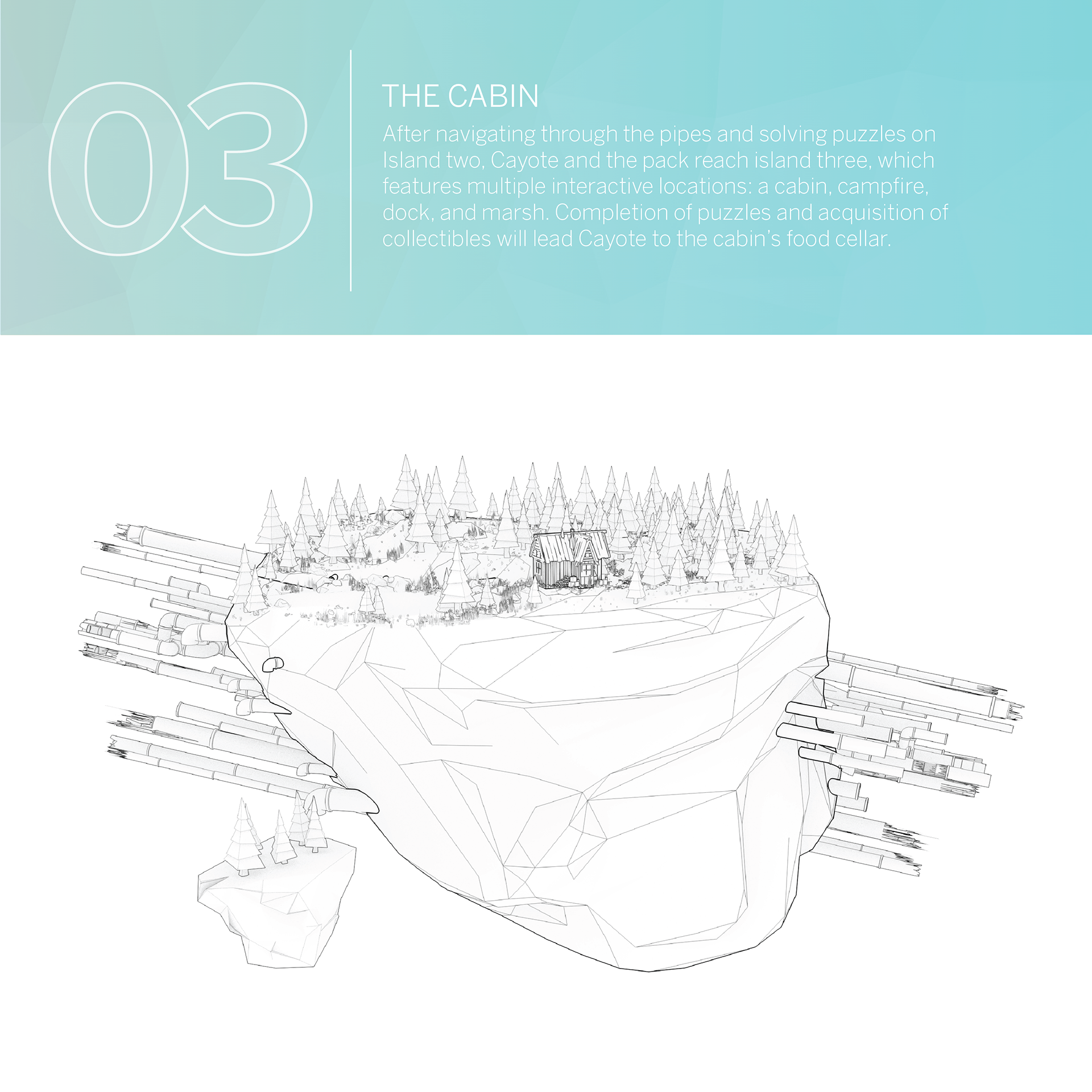 Finding Appalachia is a game world set within a low-poly abstraction of modern Appalachia. In a story of companionship, loss, and discovery/realization, the game follows Cayote and his pack through surreal, yet familiar landscapes and places. An abrupt separation of Cayote and his pack leads Cayote to wisdom and a new outlook towards his home.