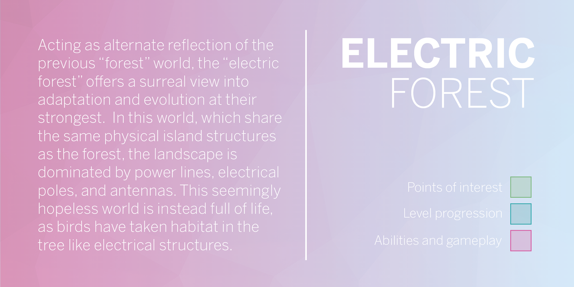 The game’s visual themes and story comment on the intrinsic connection between human intervention and natural landscapes, ultimately making the often-forgotten point that humanity shares landscapes with countless other species and complex ecosystems. Appalachia, a region stricken with environmentally detrimental human intervention, is a prime example of a region containing this unique juncture between ecologically preserved landscapes and built environments.